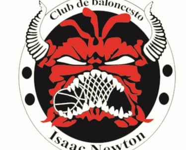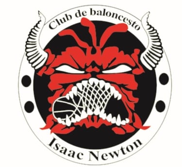 La ventaja de ser un club de barrio es que «nos ven desde pequeños por la calle y nos identifican enseguida. Somos los del baloncesto». Y para identificar el club nada mejor que el escudo del diablo, creado en 1998. «Nuestros jugadores son muy creativos y decidieron que había que darle un vuelco al escudo de la manzana, que era muy soso, demasiado formal, así que, con la misma forma, la manzana se convirtió en un diablo. Se le ocurrió a Alfredo Pumarada y estamos muy orgullosos porque es un escudo muy original». Este año, con motivo del 35 aniversario se ha realizado un rebranding del mismo, actualizando sus lineas pero manteniendo ese espíritu guerrero que transmitía el anterior. Más que un escudo, el Isaac Newton tiene dos, porque los más pequeños, los jugadores de las escuelas, llevan en el pecho una vaquita sonriente.